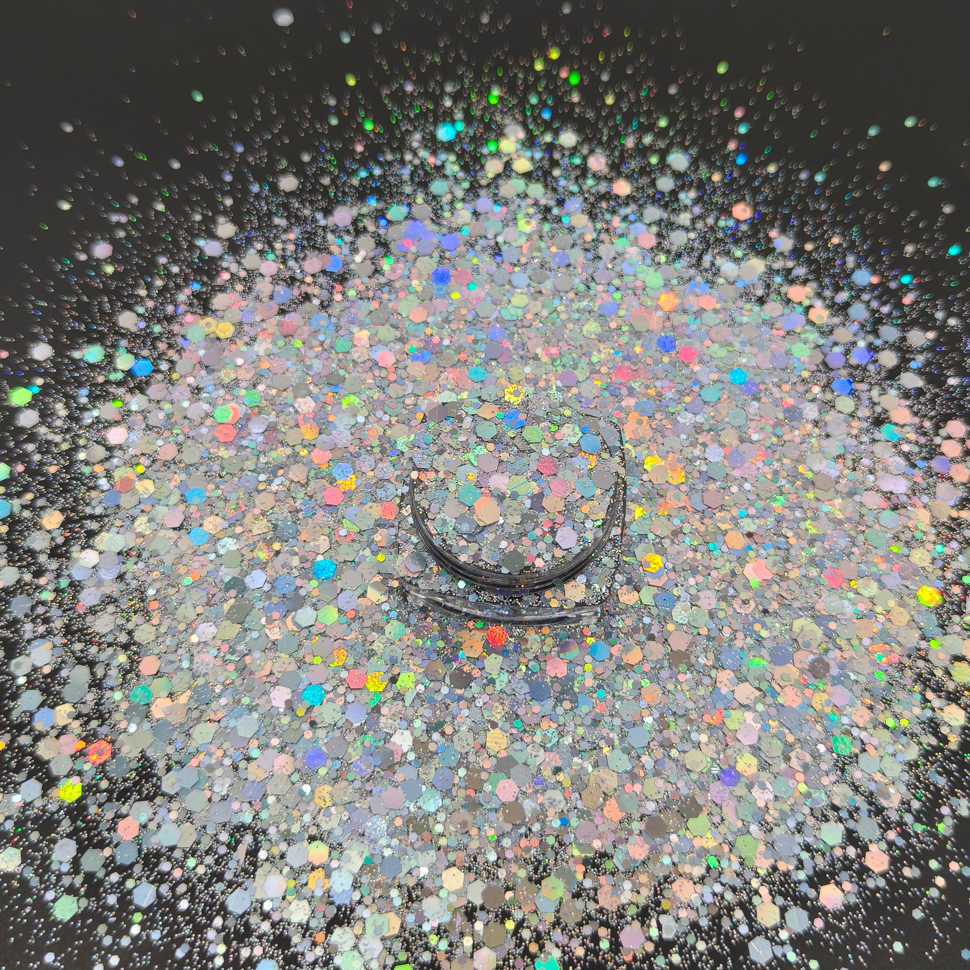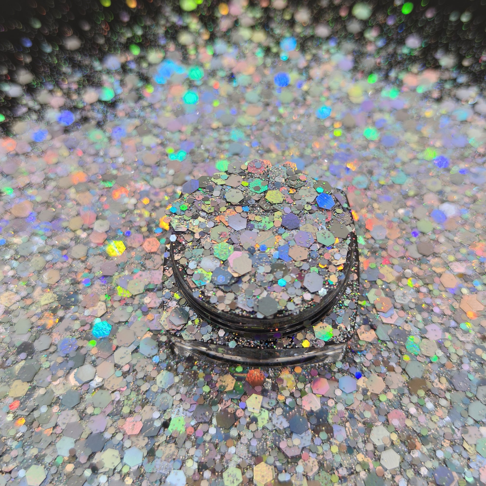 A mix of a beautiful chunky holographic silver glitter