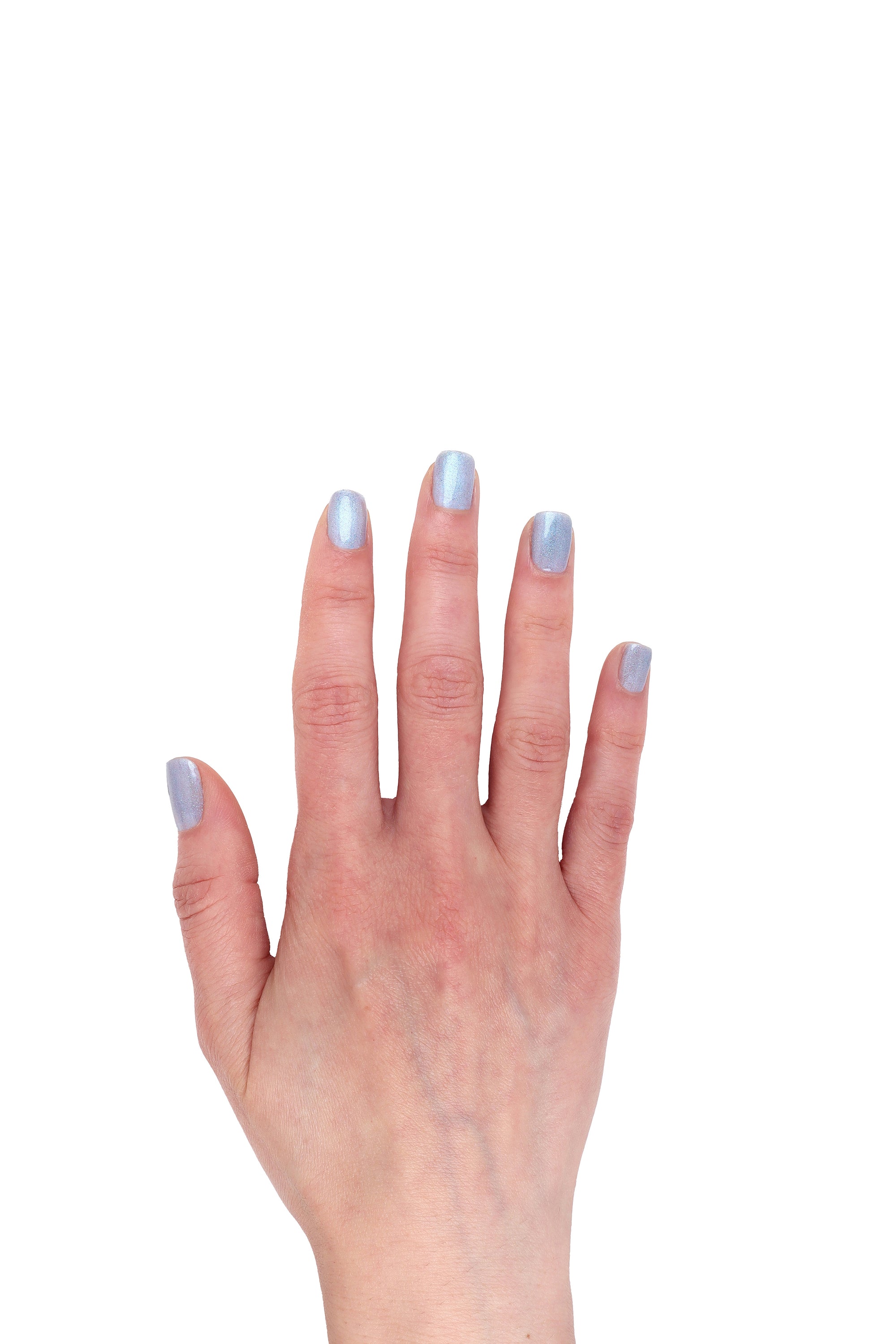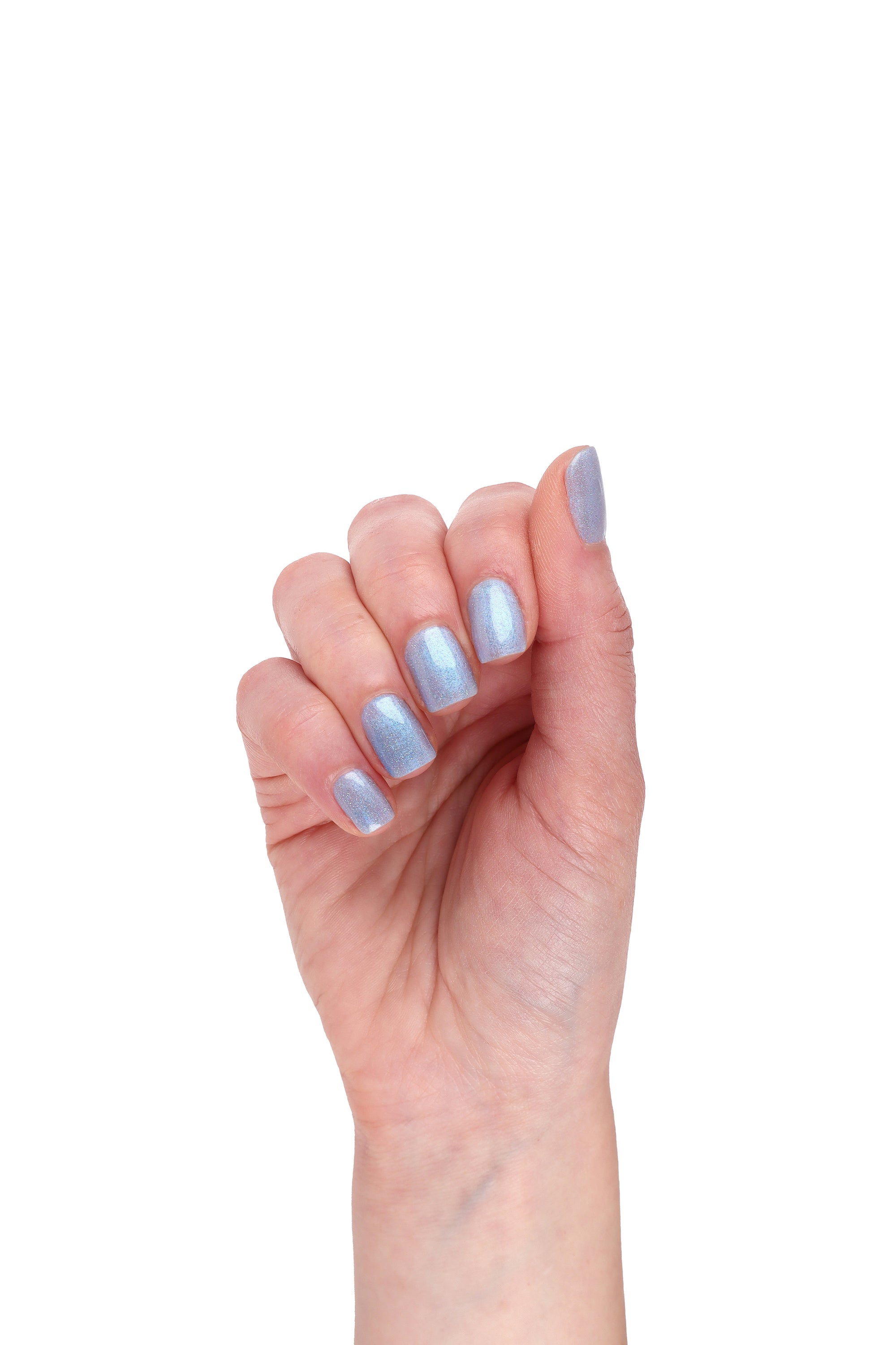 A baby blue frosted holographic shimmer that feels like texting your bestie on your first flip phone - shiny and unforgettable.