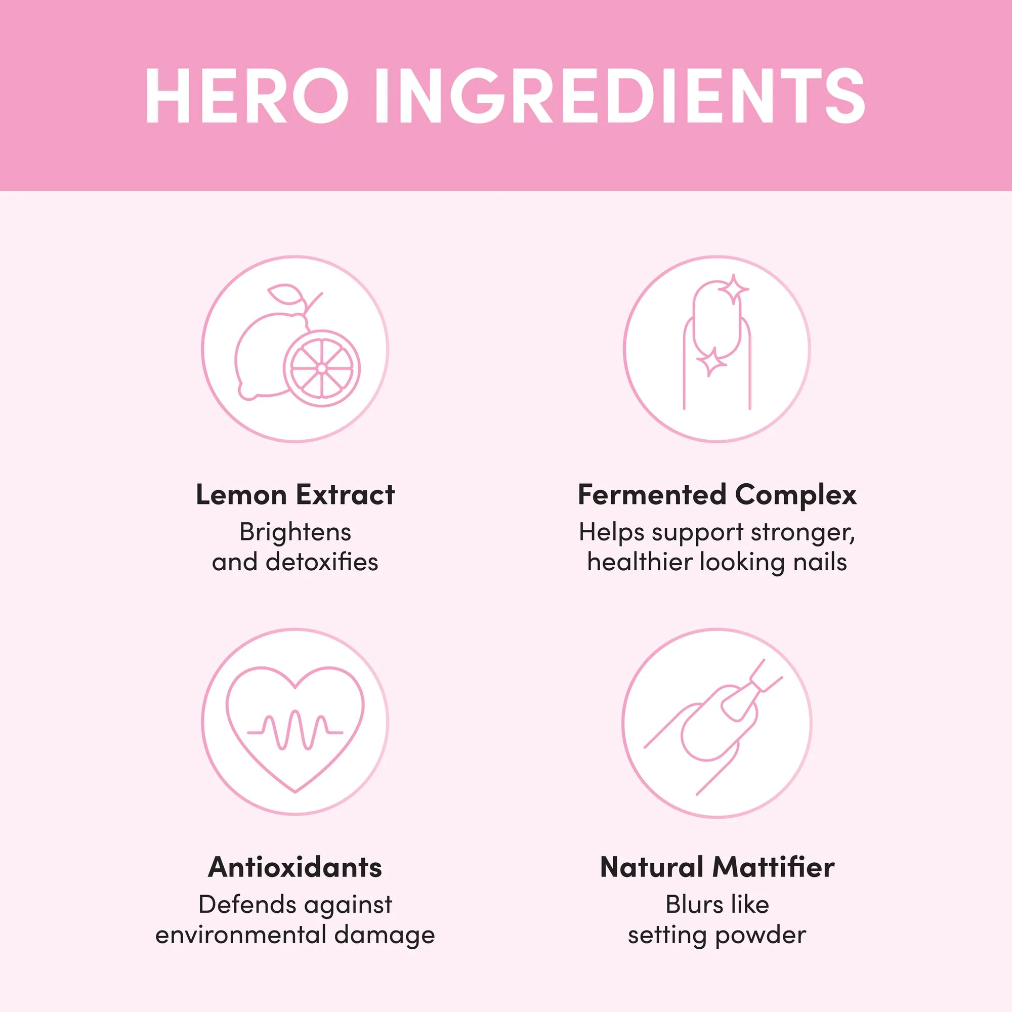 Smooths ridges. Blurs flaws. Nailed it.This instant nail perfector delivers a clean, soft-matte finish in just one swipe - no polish, no fuss. Powered by brightening lemon extract, fermented actives, and antioxidants, it strengthens while it perfects.