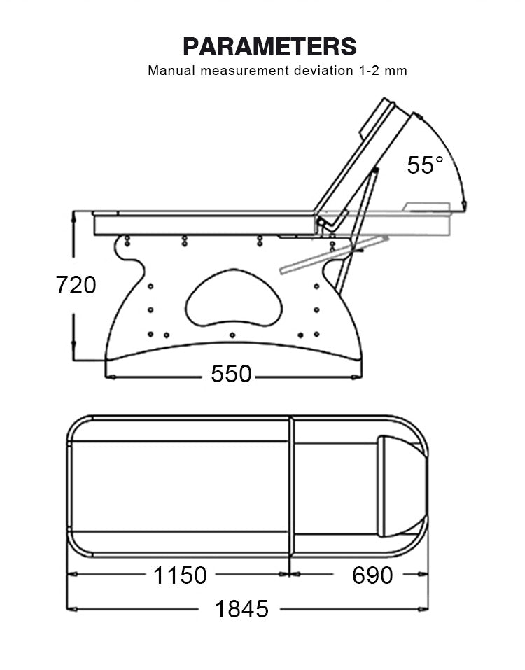 Manual massage bed with adjustable backrest and paper holder